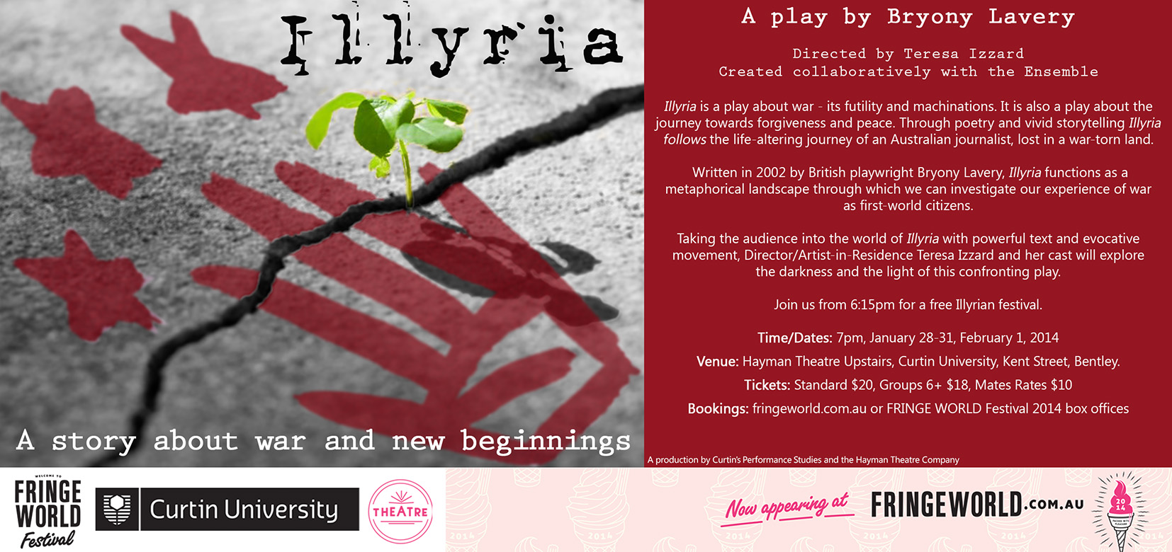So if you missed ILLYRIA in September last year, you have the chance to see it again at the Hayman Theatre at Curtin University on the 28th January. It’s wonderful to know that this quality production is about to have a second season.